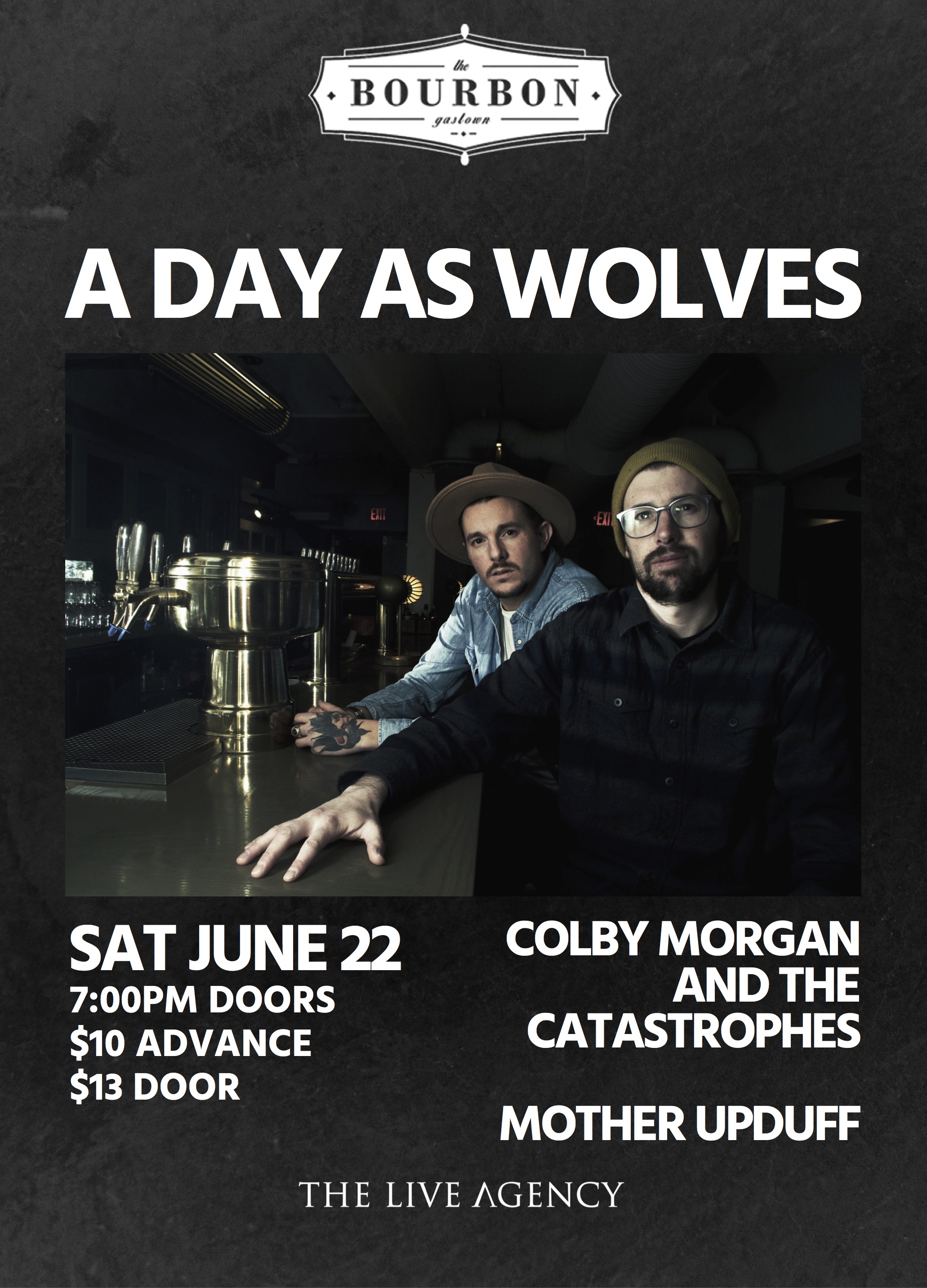 The Live Agency presents A Day As Wolves with special guests Colby Morgan and the Catastrophes & Mother Upduff