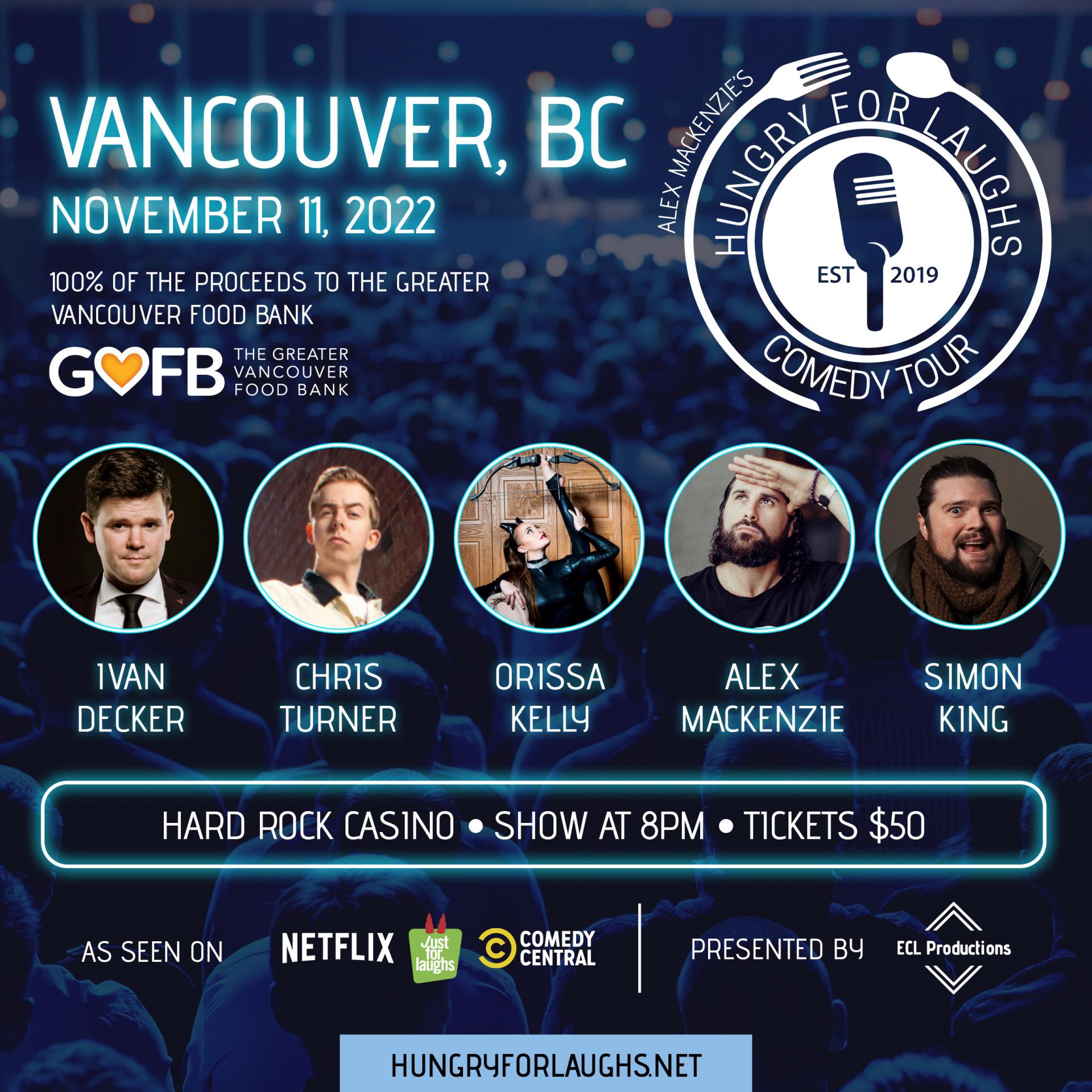 The Goal of Alex Mackenzie’s Hungry for Laughs Comedy Tour is to bring people together and build a sense of community through the power of Laughter, Love and Giving! At a time where the world feels more divided than ever, Alex Mackenzie believes that laughter is the solution to re-uniting us.
