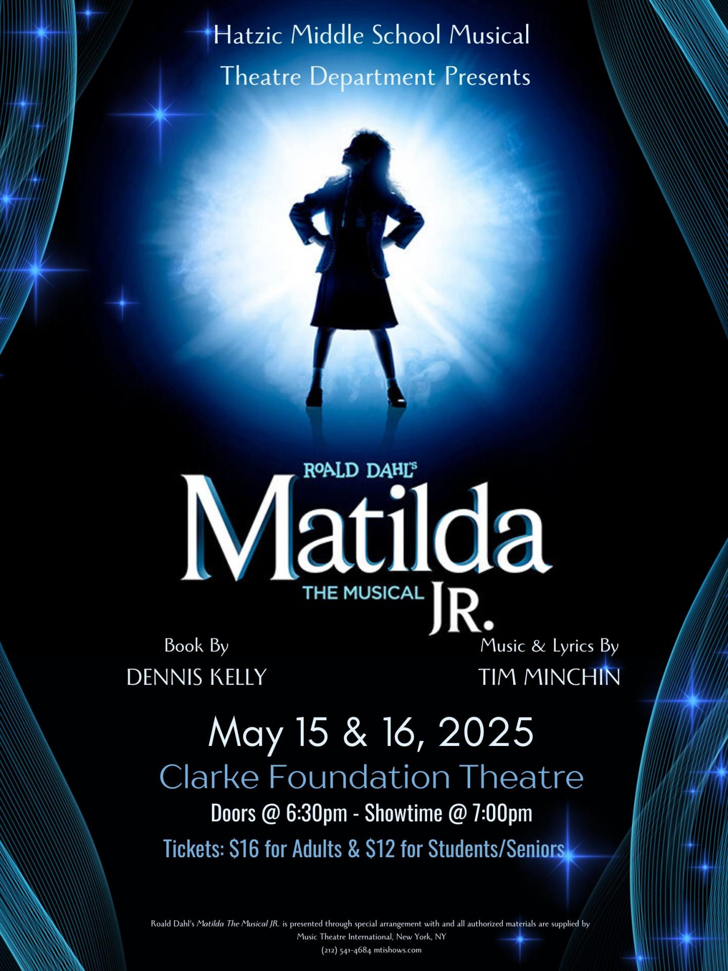 Join us for a magical evening of music, mischief, and mayhem as Hatzic Middle School’s talented performers bring Matilda JR. to life! Based on Roald Dahl’s beloved story, this high-energy musical follows Matilda, a brilliant and courageous young girl who uses her extraordinary imagination—and a touch of magic—to stand up to the formidable Miss Trunchbull and change her destiny.