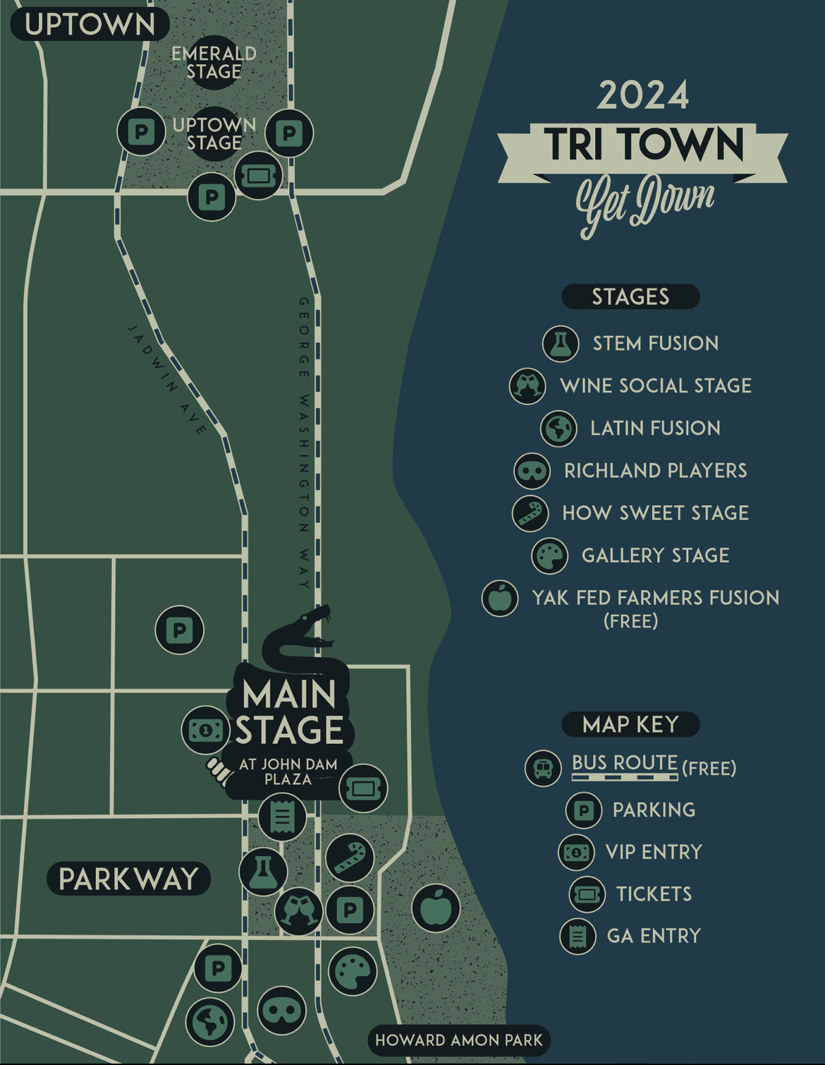 Tri-Town Get Down is the largest music festival in Eastern Washington. With 10+ stages, 100+ Acts, and six separate mini-festivals called 'Fusions' we are poised to show the world what makes Tri-Cities the place we call home.